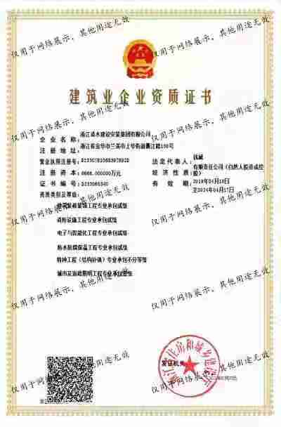 浙江清水建設(shè)安裝集團(tuán)有限公司成立于2013年,注冊資金6688萬元。集團(tuán)具有消防設(shè)施工程專業(yè)承包壹級、城市與道路照明專業(yè)承包壹級、電子與智能化專業(yè)承包壹級、建筑裝飾裝修專業(yè)承包貳級、防水防腐保溫專業(yè)承包貳級、市政工程施工總承包貳級、機電工程施工總承包貳級、建筑工程施工總承包貳級、電力工程施工總承包貳級、機電工程專業(yè)承包貳級、環(huán)保工程專業(yè)承包貳級、古建筑工程專業(yè)承包貳級、特種工程結(jié)構(gòu)補強專業(yè)承包、建筑施工勞務(wù)作業(yè)專業(yè)承包(憑建筑業(yè)企業(yè)資質(zhì)證書經(jīng)營